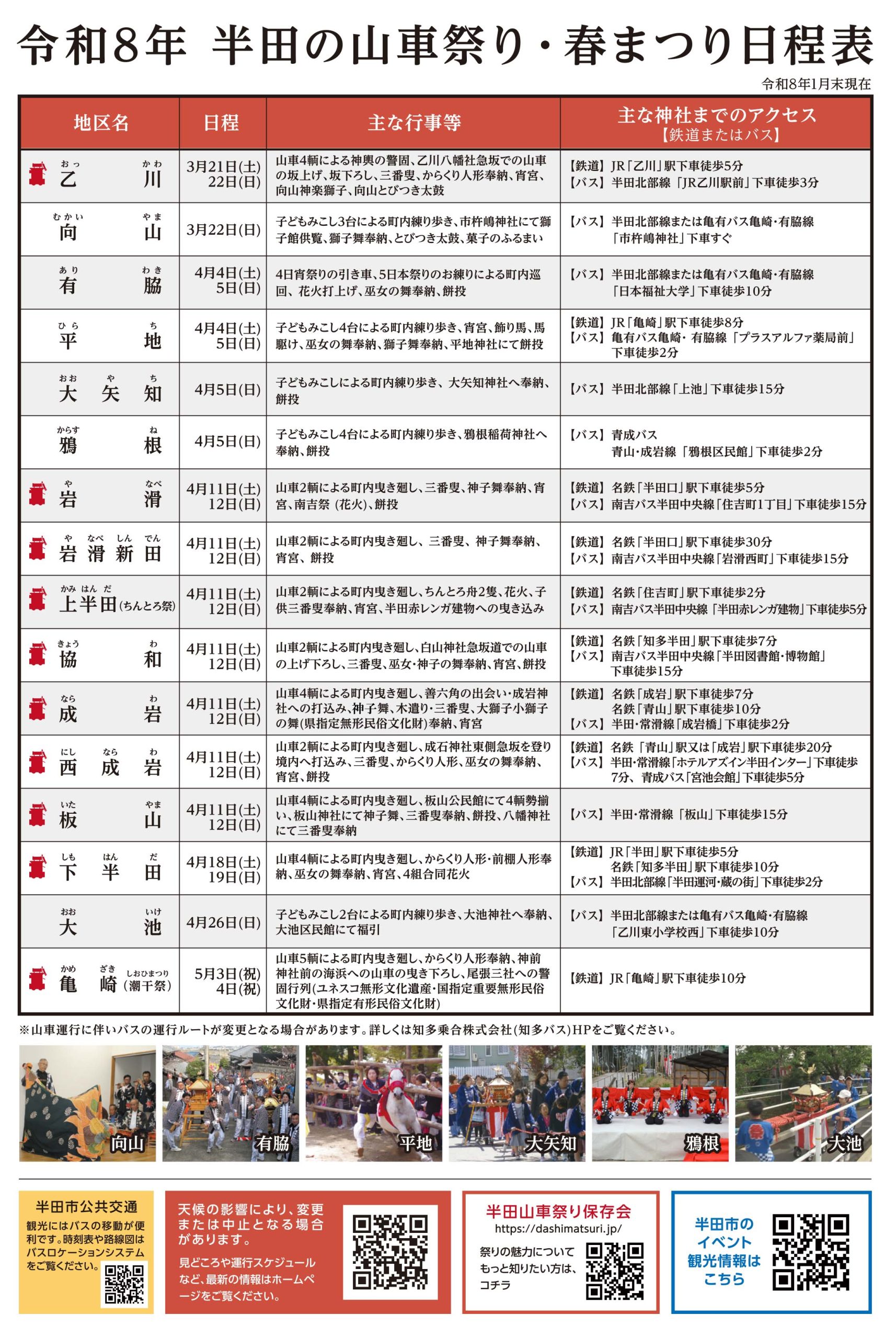 【令和8年】 半田の山車祭り・春まつりのお知らせ