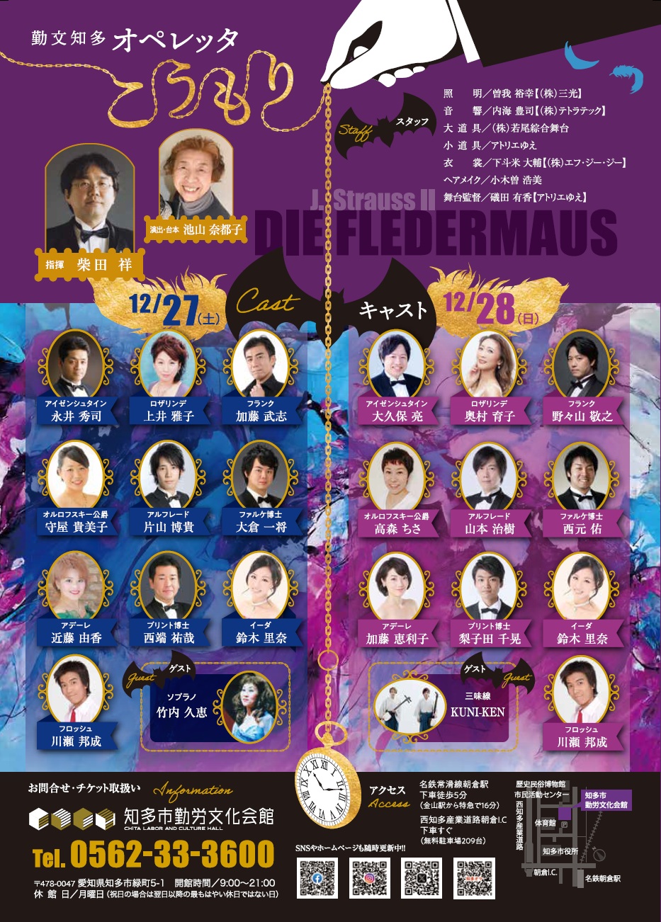 ドイツ語圏のヨーロッパ諸国では年末年始の恒例イベントとなっている「こうもり」。今年はヨハン・シュトラウス生誕200年にちなんで知多市勤労文化会館で市民の皆様と一緒に演奏会を楽しんでいただきます。