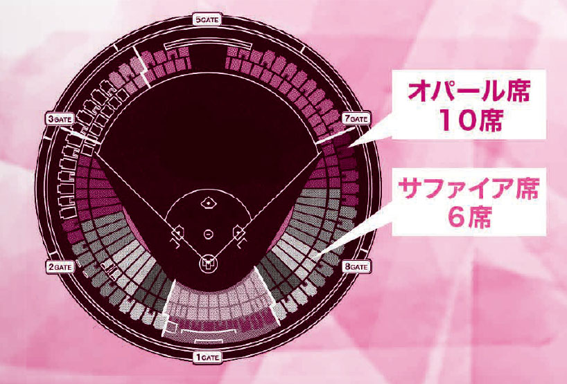 | あっせん料金 | サファイア席(平日) 3,200円(通常 約6,400円) サファイア席(土・日・祝日) 3,700円(通常 約6,400円) オパール席(平日) 1,700円(通常 約4,200円) オパール席(土・日・祝日) 2,200円(通常 約4,200円) *オープン戦 ご招待
