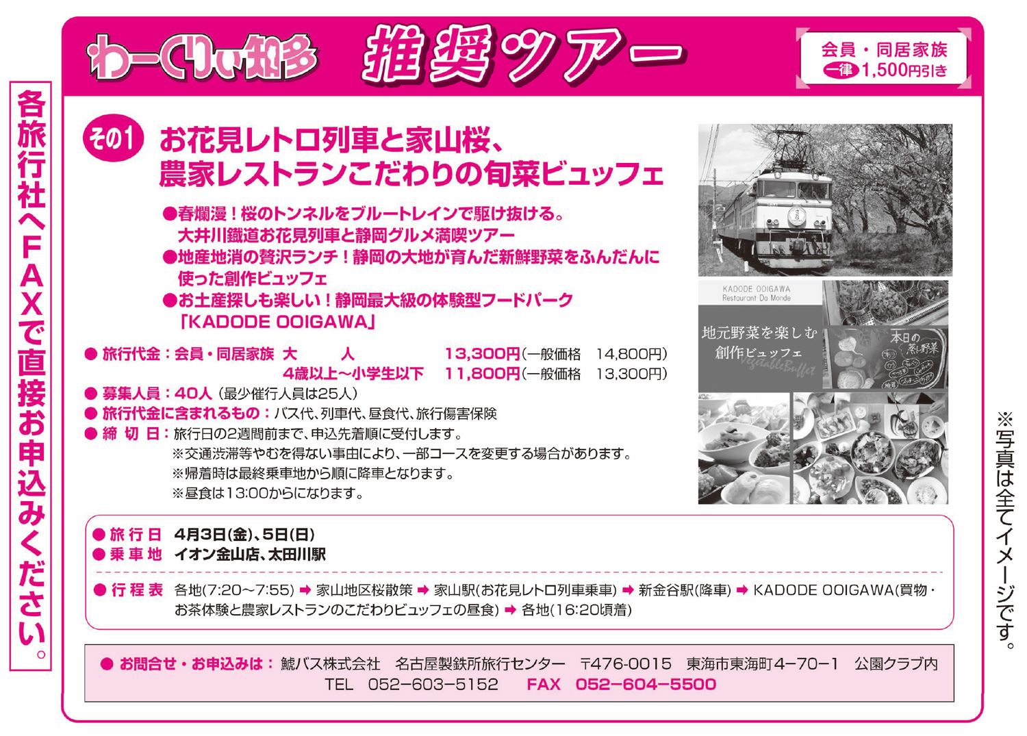 お花見レトロ列車と家山桜、農家レストランこだわりの旬彩ビュッフェ